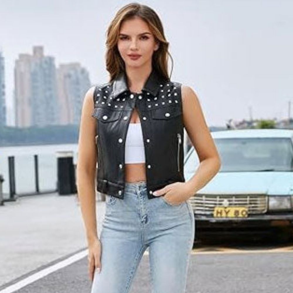 Ride in Style: Black Leather Biker Vest with Camo Flair