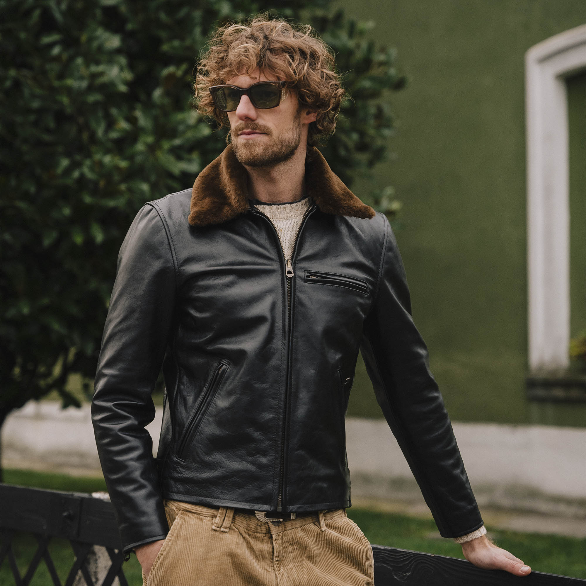 Double-Stitched Black Leather Vest Featuring Inner Flag Design