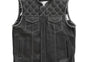 A classic biker vest is a rugged, sleeveless garment often made from premium leather or durable denim. It typically features a V-neck or collared design and is adorned with distinctive details like metal snaps or zipper closures. Biker vests often include multiple pockets, both external and internal, for utility and style.