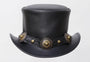 Distressed BLACK Leather Top Hat with Decorative Band