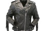 Crafted from genuine animal skin, this Women’s Black Fringe Jacket embodies both style and durability. True to its name, it features fringes on the sleeves, reminiscent of classic Western attire popular in Texas. With a lapel-style collar and silver buttons adorning each side, this jacket offers a striking look. The zipper closure not only enhances the biker aesthetic but also provides added comfort for those long rides on the open road.